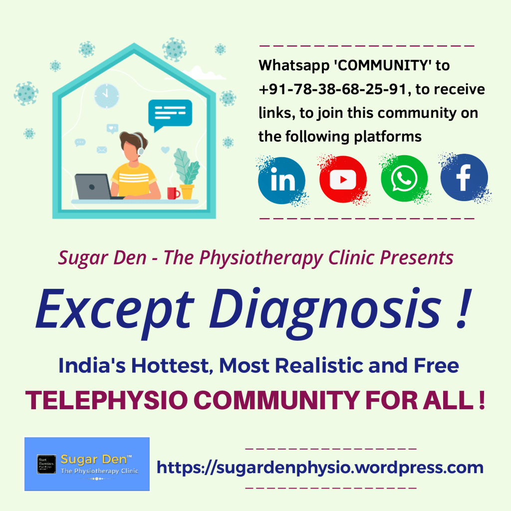 From 25th April, 2020, saturday onwards, watch from anywhere in India – my Physiotherapy presentations on Facebook Live, daily, on my Facebook group “Except Diagnosis”.
