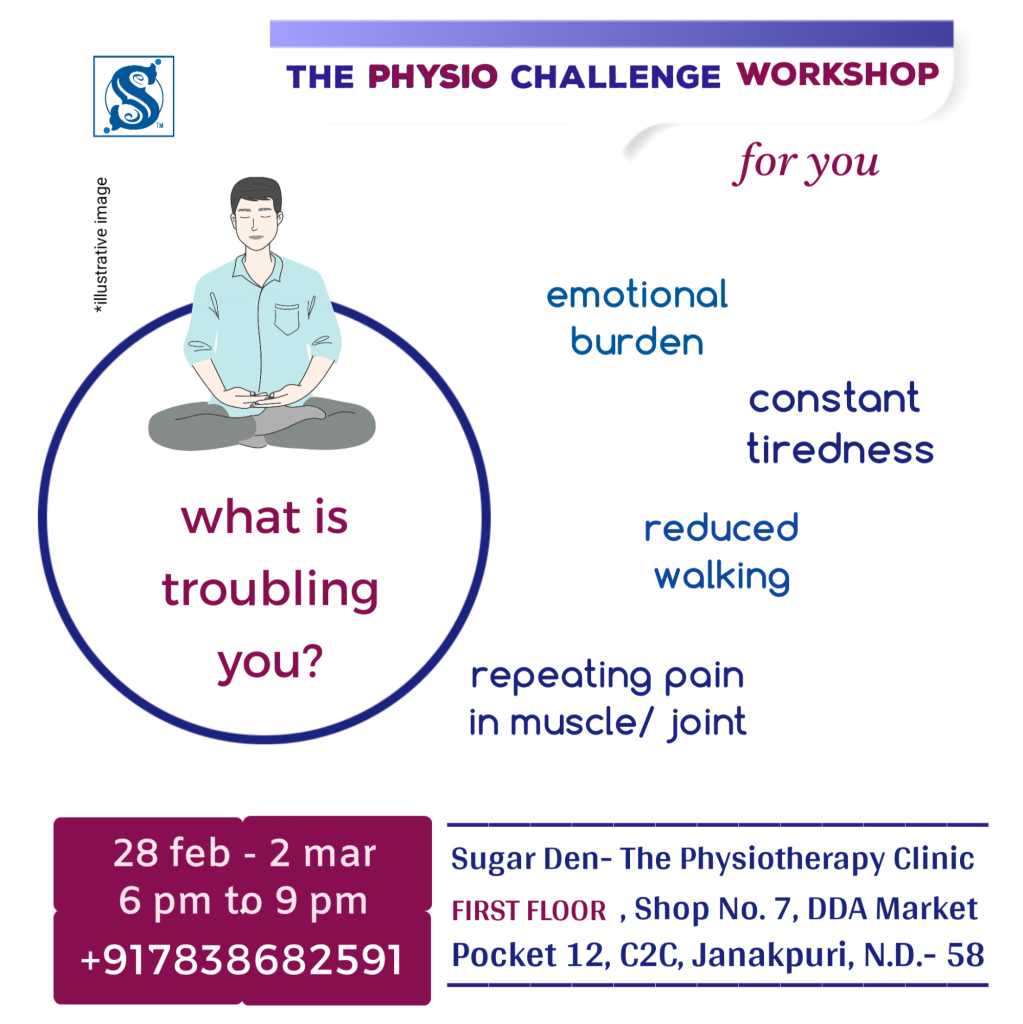 Welcome to the Physio Challenge Workshop for You, at Sugar Den- The Physiotherapy Clinic, at Janakpuri, in West Delhi.